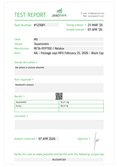 | Retalux | Tesamorelin10mg•User Submitted | — | — | 04/07/2026 |